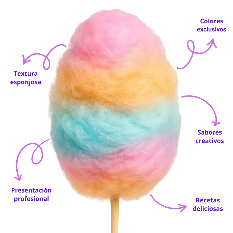 Aprende a crear algodones de azúcar en colores y sabores para fechas especiales, perfectos para aumentar tus ventas en las fechas más esperadas del año